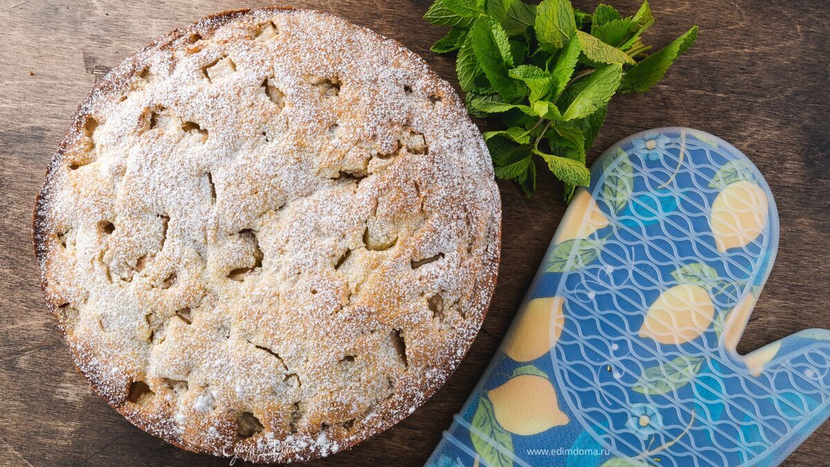 Выпекайте пирог при 180°С 50 минут. Остудите на стекле и посыпьте сахарной пудрой. Приятного чаепития!