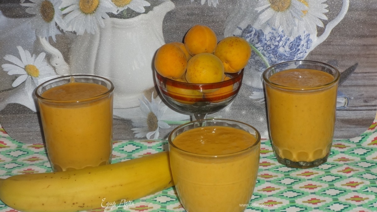 В этом смузи я объединила домашние абрикосы, спелый банан и любимый напиток — мацони. Получилось очень вкусно!