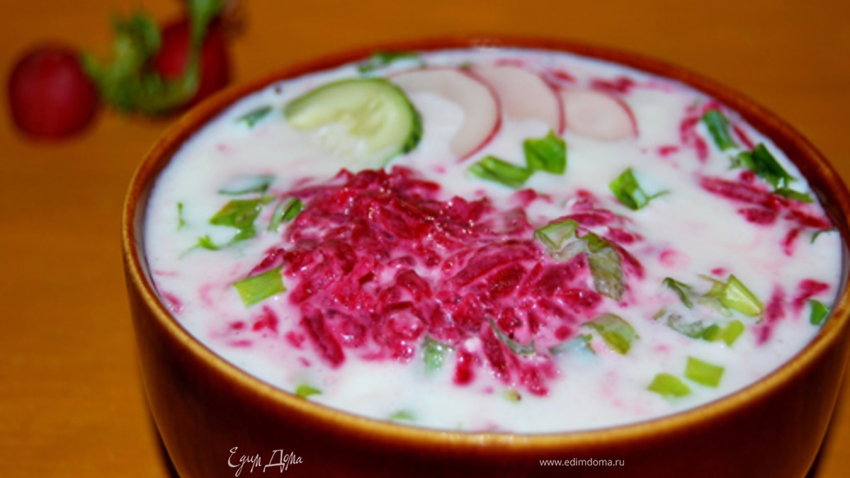 - Шаг 1Свеклу натереть, выложить на сковороду, добавить сахар, немного воды, сок лимона и потушить до готовности. Отваренный картофель, огурец, редис и вареные яйца натереть на крупной терке. Зеленый лук мелко порубить. Кефир соединить с соком лимона, посолить, добавить перец и сахар по вкусу, перемешать. В суповые тарелки выложиьсвеклу вместе с отваром, добавить овощи, залить кефиром, украсить зеленым луком. Приятного аппетита!