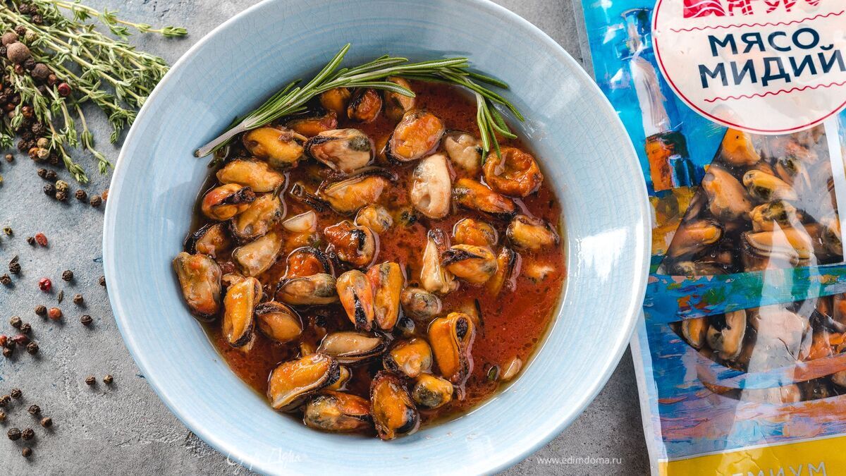 Мидии в томатно-чесночном соусе