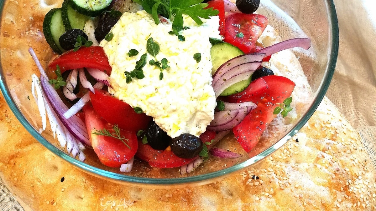 Греческий салат с заправкой из феты