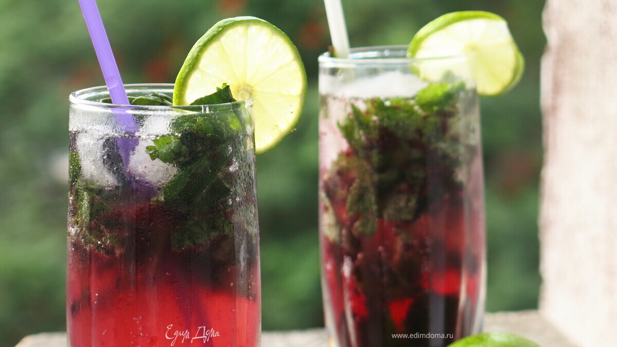 Кто не пробовал мохито — освежающий мятный напиток? Наверное, многие. Летом, в жару, такой напиток — спасение. Попробуйте раскрасить и обогатить его вкусом ежевики, получается яркий летний напиток. Приятного!