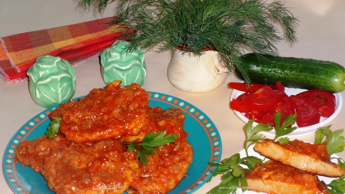 Оладьи из икры в томатной подливе
