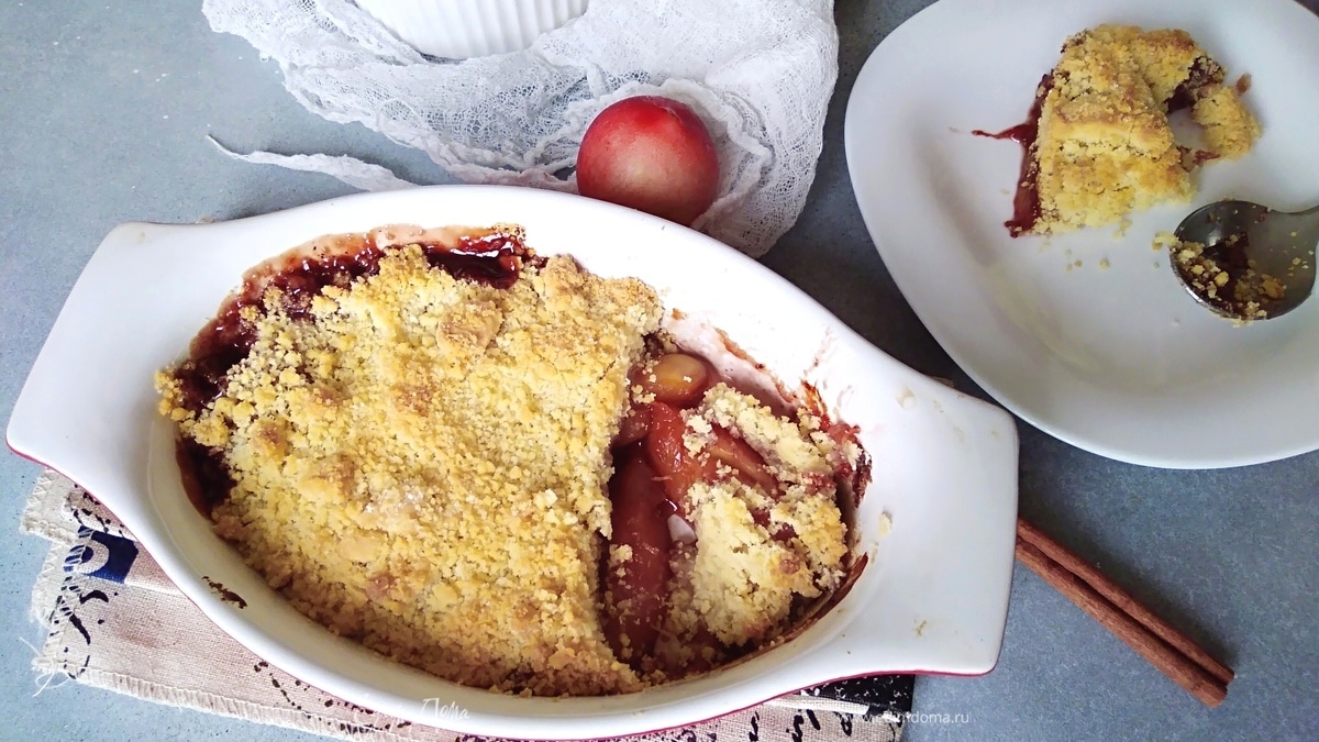 Можно, конечно, готовить крамбл в любое время года, но как же ароматны фрукты в сезон! Грех не воспользоваться этим, поэтому готовим пряный крамбл. Не любите персики, возьмите сливы или нектарины, даже плотные абрикосы будут хороши в этом десерте.