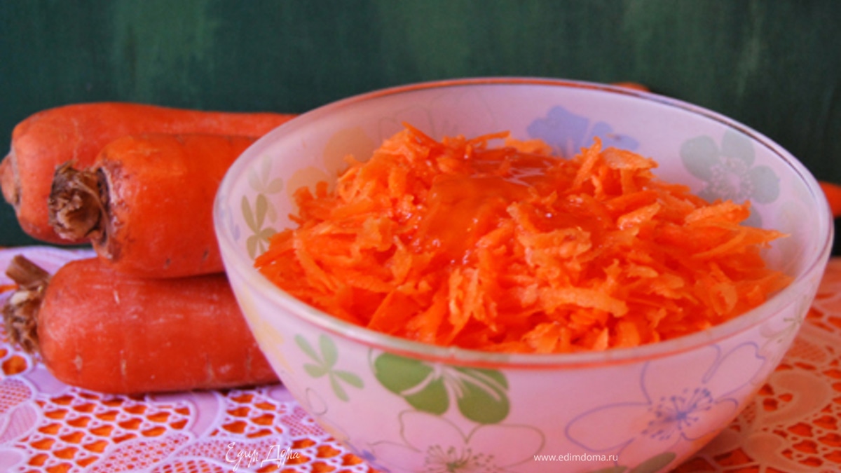 - Шаг 1Подготовленную морковь натереть на крупной терке, заправить мёдом, перемешать и дать немного настояться. Можно также добавлять грецкие орешки /более калорийный вариант/. Получается вкусный и очень полезный десерт! Приятного аппетита!