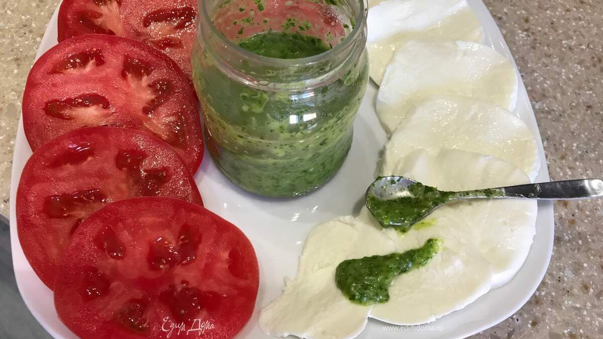 - Шаг 1Помидор нарезать пластиками. Моцареллу нарезать пластиками.