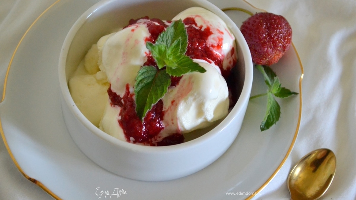 Мороженое с клубникой и малиной