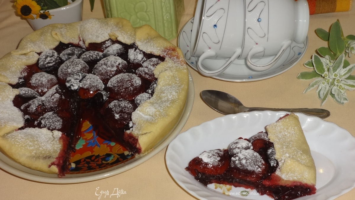 Сливы вымыть, обсушить. Разделить на половинки, удалить косточки. Выложить половинки слив поверх чернослива. У меня было штук 8 крупных розовых слив, остальные— мелкие сливы, терн. Завернуть свисающие края теста на сливы. Поставить галету в духовку, разогретую до 180°C, на 40–45 мин. - Шаг 9