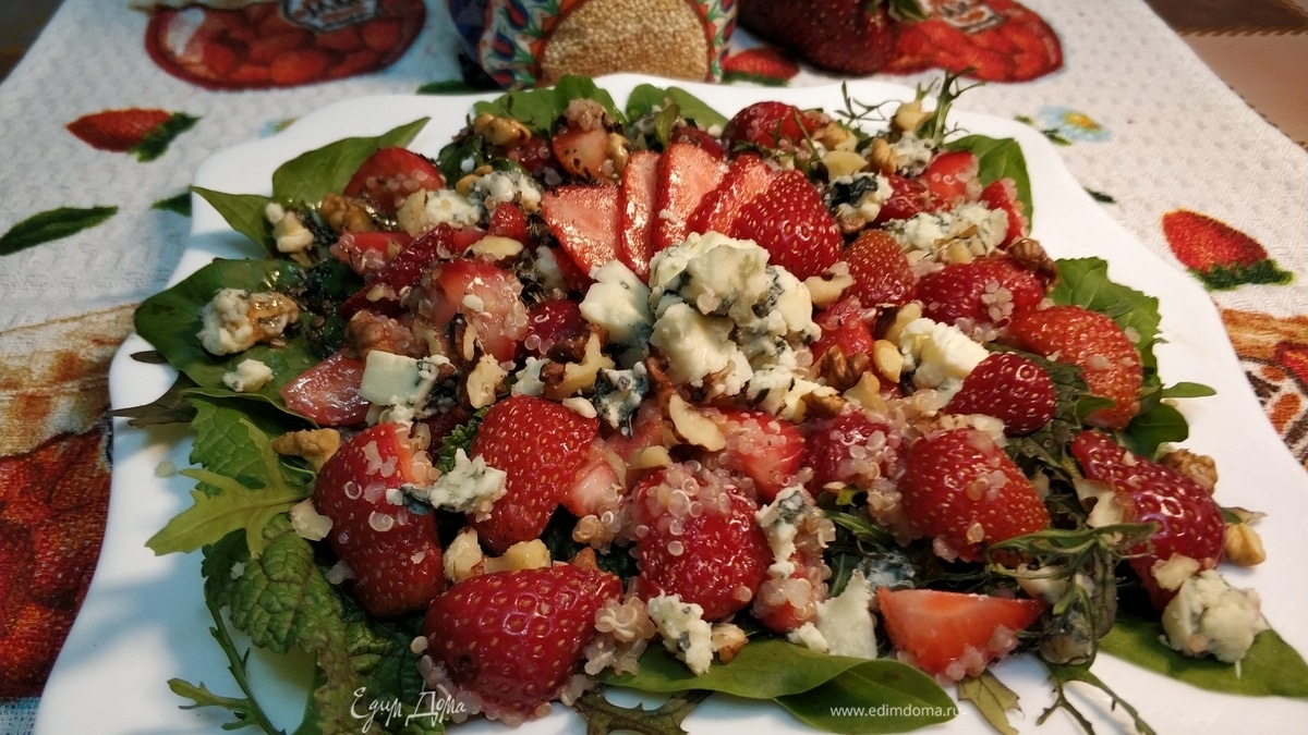 Салат с клубникой, дорблю и киноа «клубничное безумие»