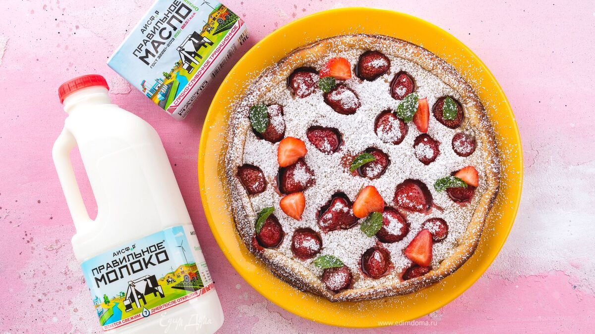 Залейте клубнику тестом. Выпекайте клафути 40 минут до золотисто-коричневой корочки. - Шаг 7