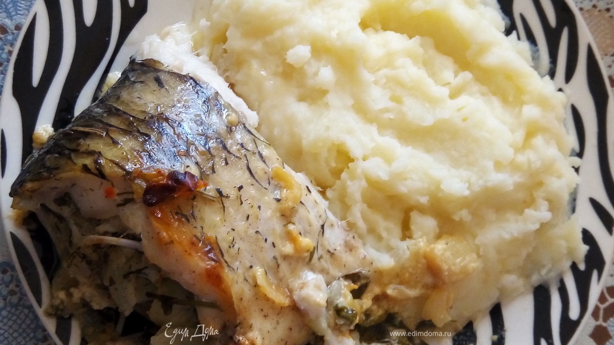 Когда рыбка приготовится, выкладываем порционно на тарелки и подаем с любым, на ваш вкус, гарниром, у меня — картофельное пюре. Приятного аппетита, мои дорогие!