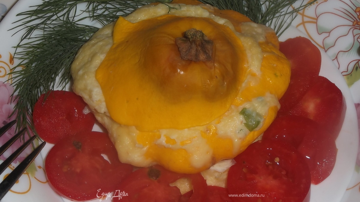 У патиссона срезать крышечку. Аккуратно ложкой удалить семена, стараясь не повредить стенки. Изнутри посыпать солью. - Шаг 2