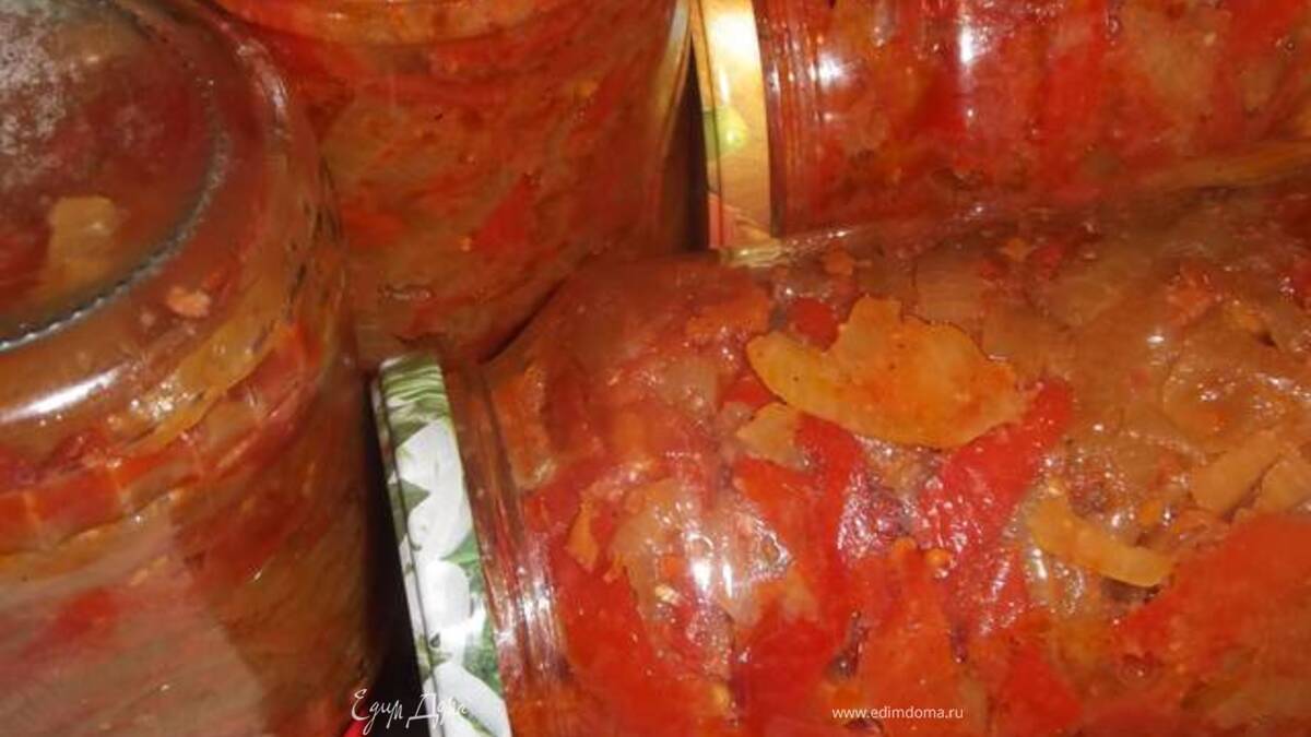Поперчить все овощи, добавить соль, если надо. Добавить уксус. Все хорошо перемешать и разложить по банкам. Стерилизовать банки 0,5 л не менее 40 минут. Если заготовка у вас остыла, то время стерилизации увеличьте. Закатайте и переверните. Выход — 4 л. Удачных заготовок!