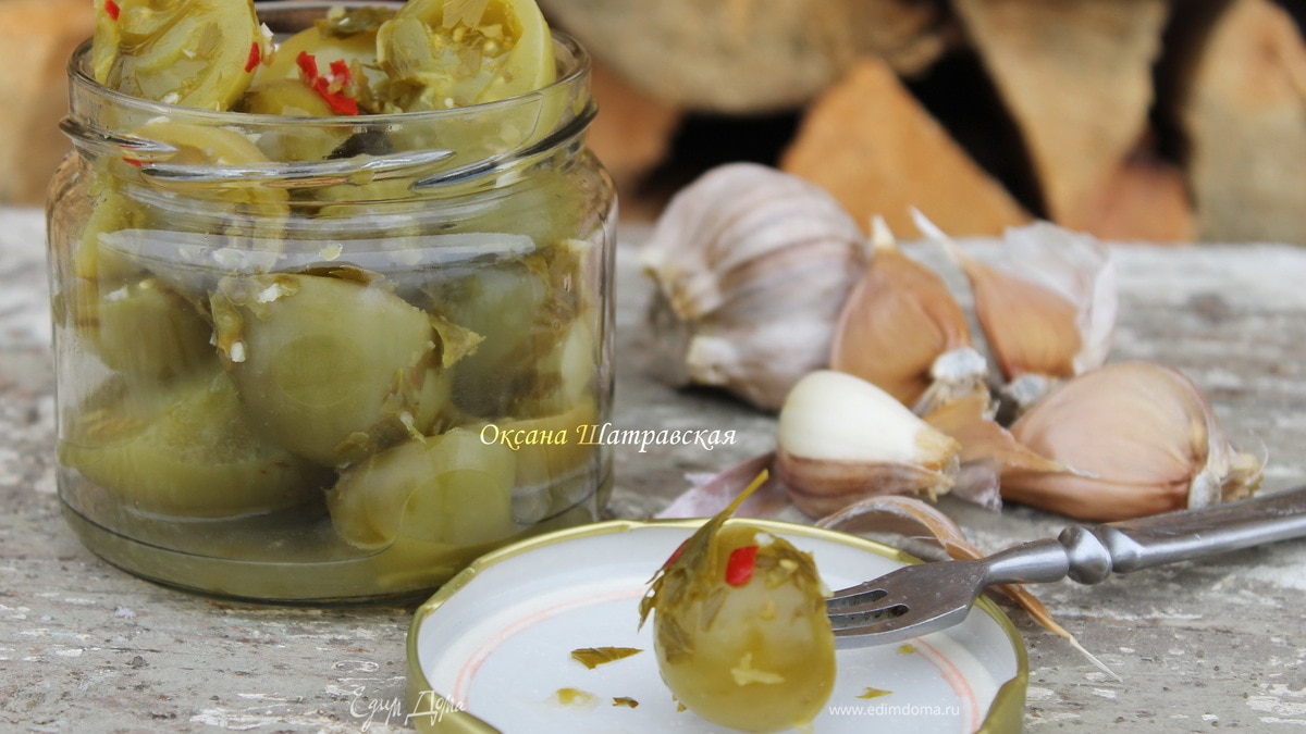 Вот иногда бывает, что помидорчики не успевают созреть и остаются зелеными. Что же с ними делать?! Я и варенье из таких варила, и мариновала разными способами. Сегодня хочу поделиться рецептом остреньких зеленых помидорок.