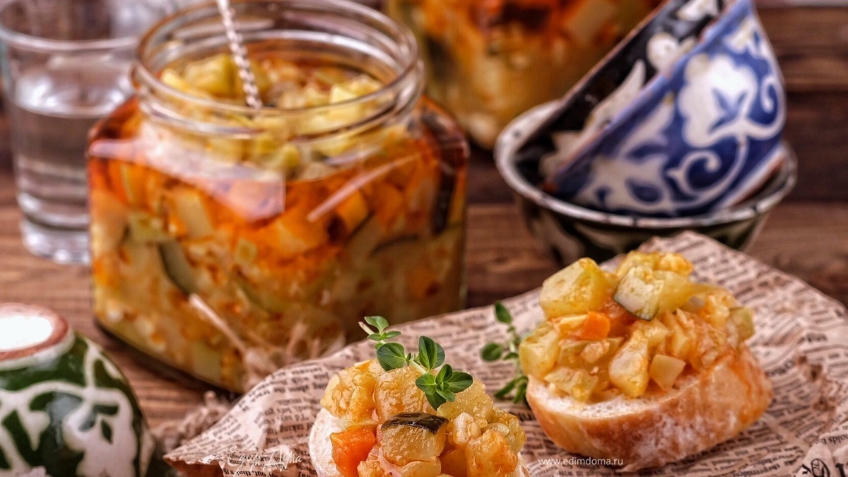 Без преувеличения скажу, эта «Татарская песня» — моя любимая закуска из кабачков! Очень вкусная овощная закуска, рецептом которой со мной поделилась моя любимая тетя Валя и именно под таким интересным названием. Для тех, кто увлекается консервированием, эту закуску легко можно заготовить на зиму. Из данного количества получается 5–6 0,5-литровых банок.