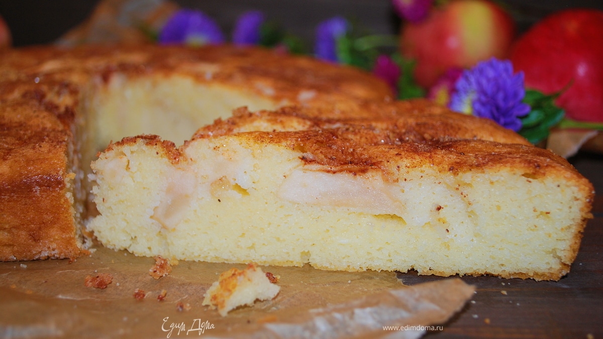 Очень нежная яблочная шарлотка со сливочным вкусом и хрустящей корочкой.