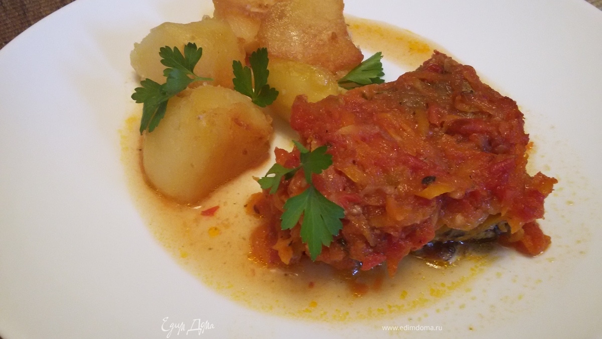 Минтай, тушенный с овощами