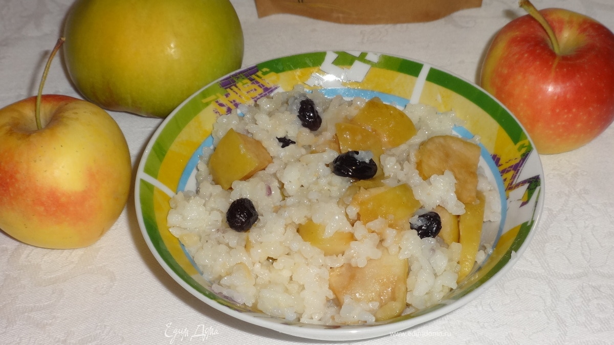 Рисовая каша с изюмом и яблоками