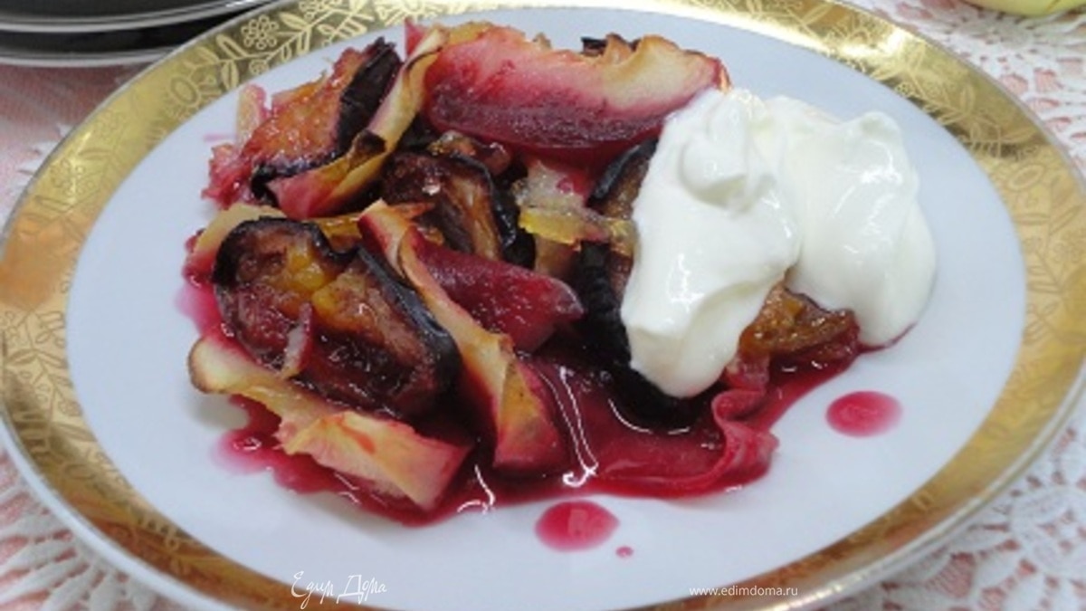 Яблочно-сливовая запеканка под лимонным джемом