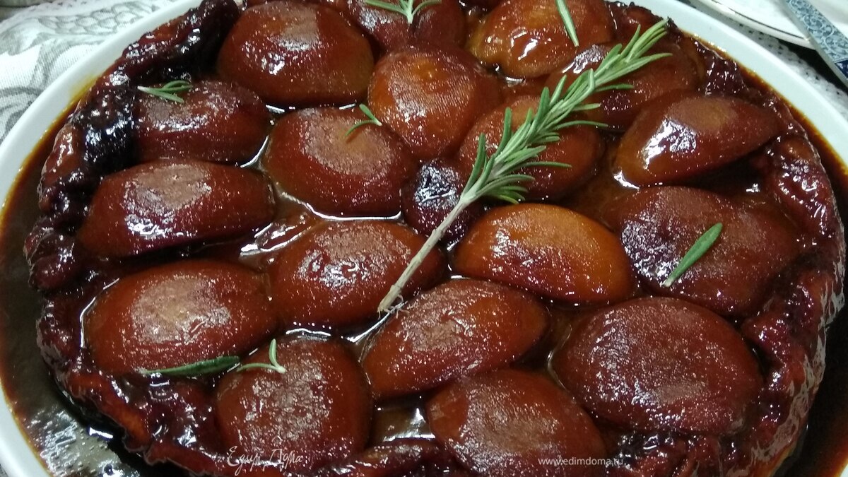 Тарт татен с персиками и карамелью