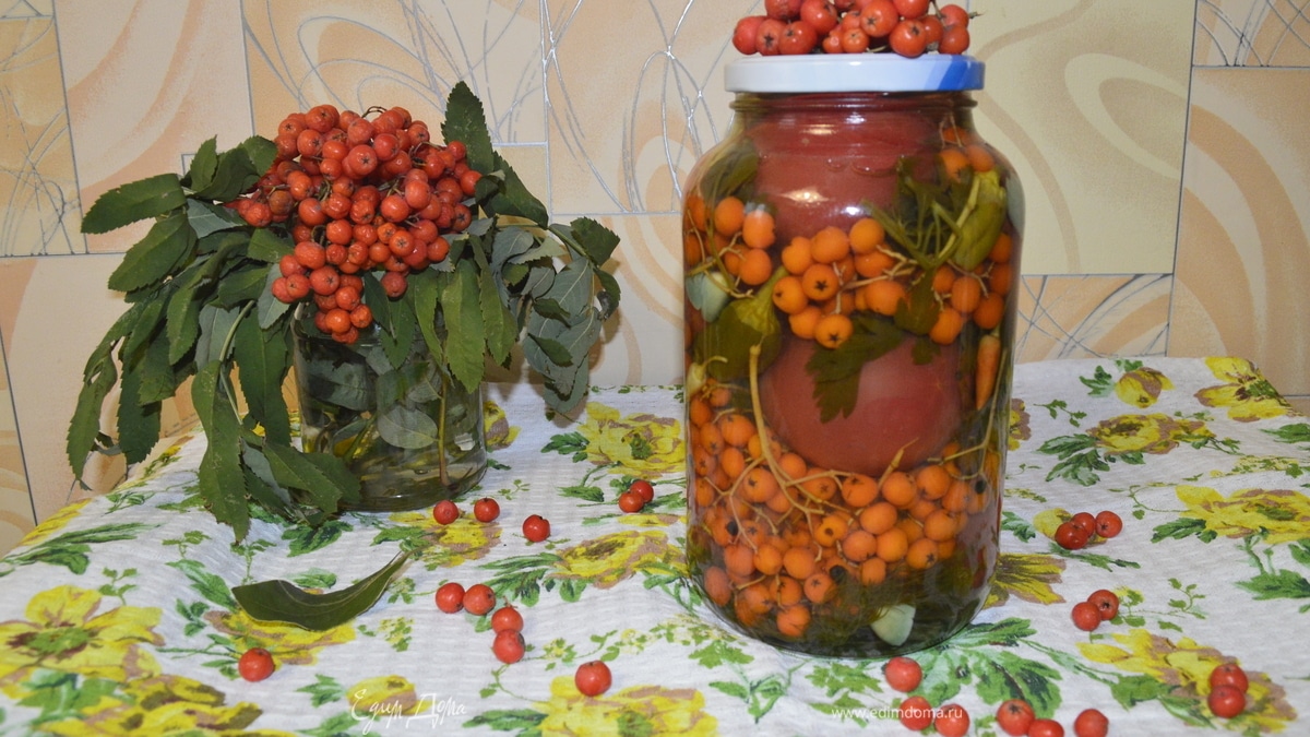 Помидоры с красной рябиной ассоциируются у меня с морозами, холодом, новогодними праздниками. Смотрится красиво, празднично. Рябина на любителя, но она полезна. Горечь нам поможет убрать морозилка. Делается несложно.