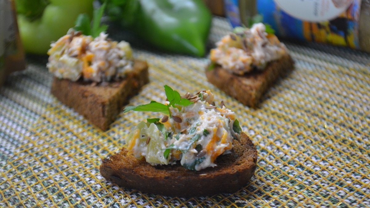 Подаем гренки с паштетом из тунца. Сверху я еще посыпала семенами льна. Приятного аппетита!