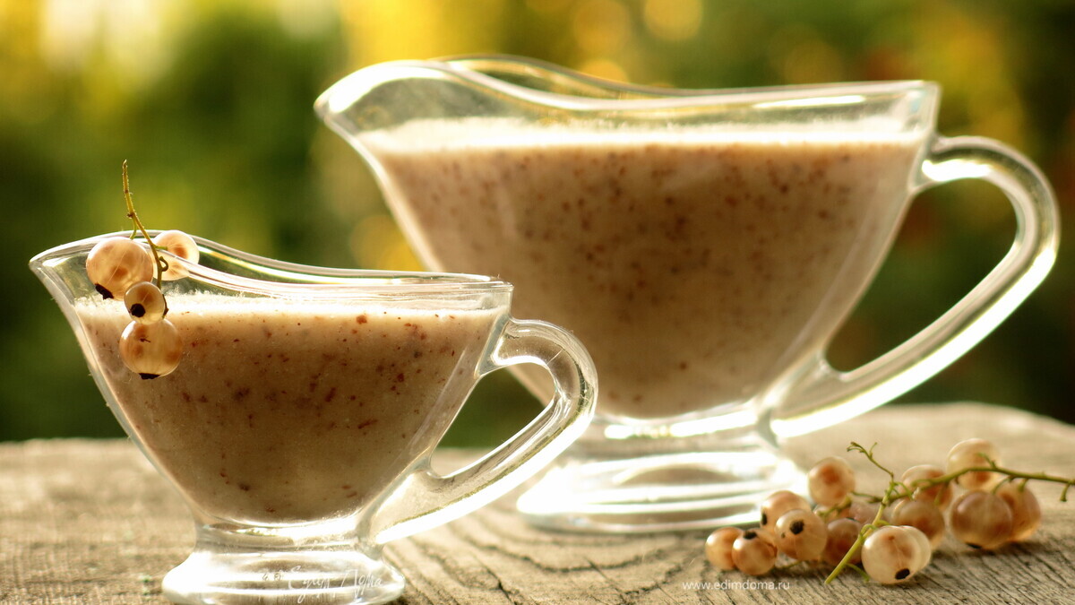 Представляю соус из белой смородины с вином и миндалем. В таком соусе можно мариновать мясо. Или же подавать его к готовому блюду: мясу, сыру или овощном салату. Надеюсь, что этот соус попадет в вашу кулинарную книгу под урожай смородины в следующем году. Приятного!
