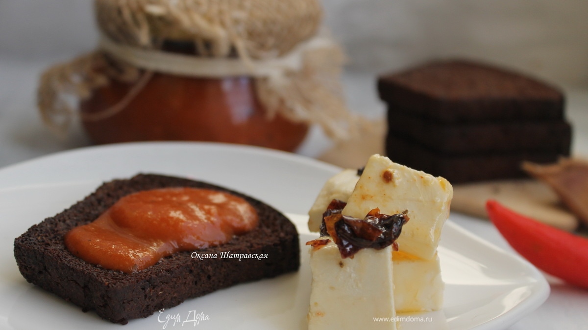 Добавить в соус уксус, оливковое масло, перец чили. Варить соус 30 минут, затем протереть через сито. Готовый соус разлить в стерилизованные банки и закрыть крышками.