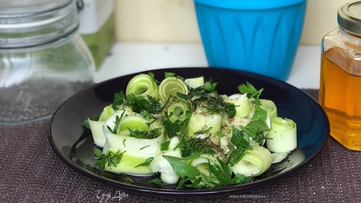 Жидкость с кабачков слить, залить маринадом. Убрать в холодильник до утра. Посыпать зеленью. Можно подавать на стол! Очень вкусно получается, а главное — быстро!