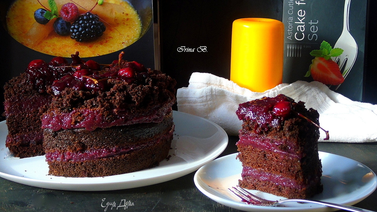 Готовый торт лучше всего подавать охлаждённым — так контраст между тёплыми коржами и холодным кремом и соусом раскрывается ярче. Торт можно хранить в холодильнике до 3 дней, завернув в плёнку, чтобы сохранить влажность коржей. Для более выраженного вишнёвого вкуса в крем и соус можно добавить немного ванильного экстракта.Оценить55