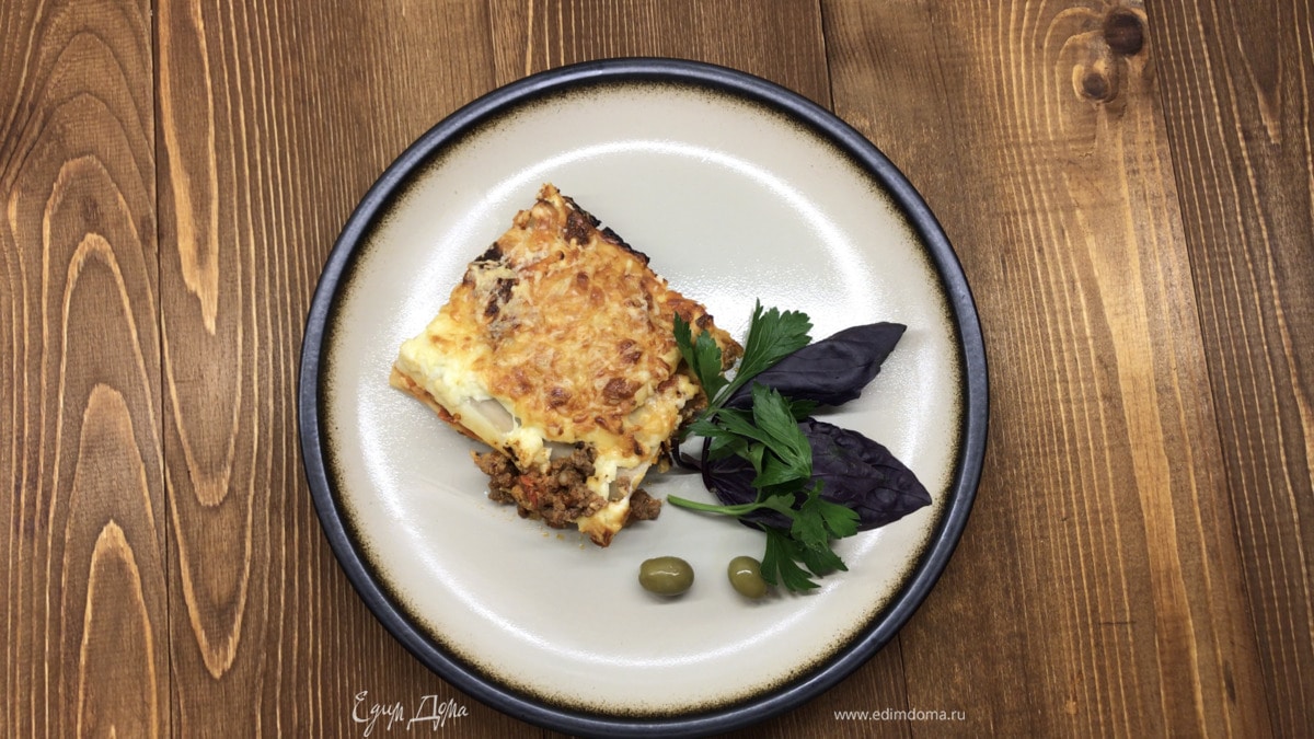 Когда все слои уложены, сверху заливаем блюдо йогуртом, взбитым с яйцом, и посыпаем оставшимся пармезаном. Отправляем в разогретую до 180–200°C духовку на 30 минут. - Шаг 16