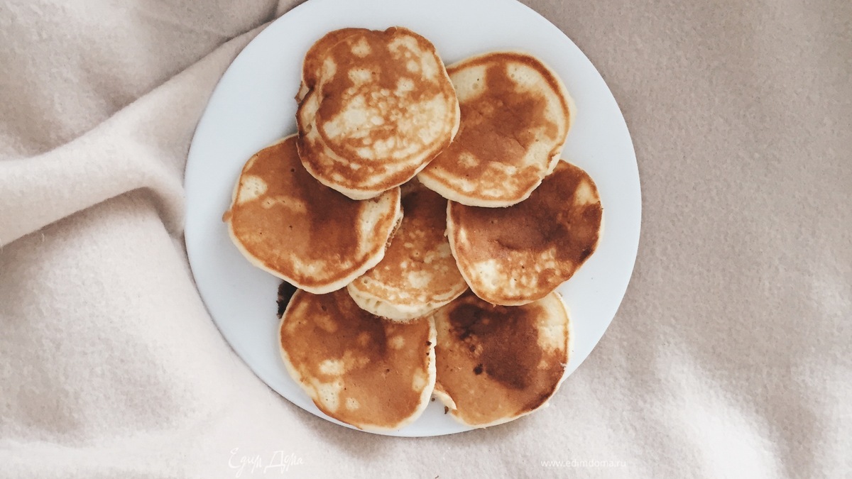 - Шаг 4Выкладываем по столовой ложке теста на раскаленную сковороду, затем убавляем огонь и накрываем крышкой минуты на 3, переворачиваем и держим еще 3 минуты. Подаем с любимым варением.