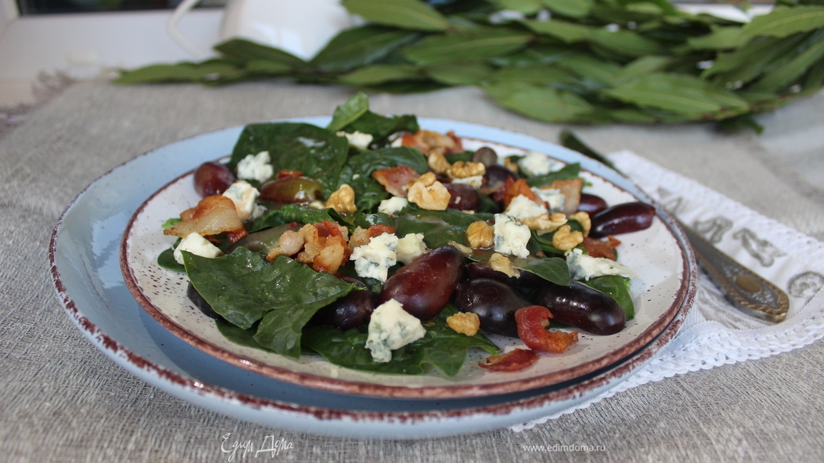 Салат с виноградом и голубым сыром под теплой беконной заправкой