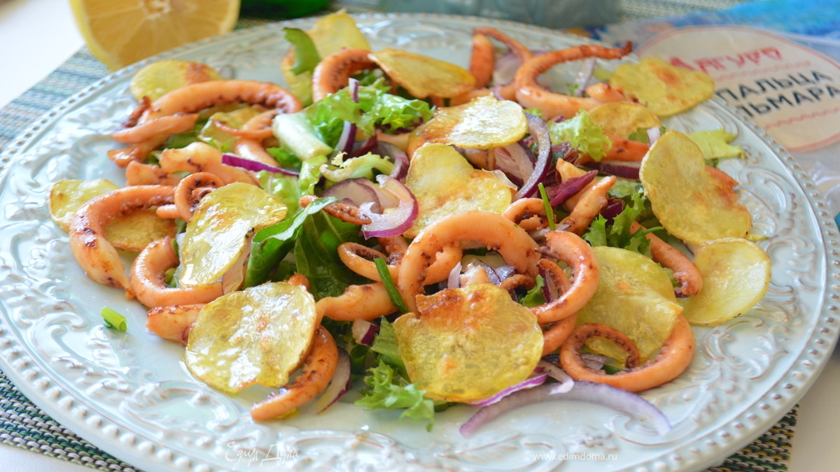 Салат с кальмарами в медово-горчичном маринаде