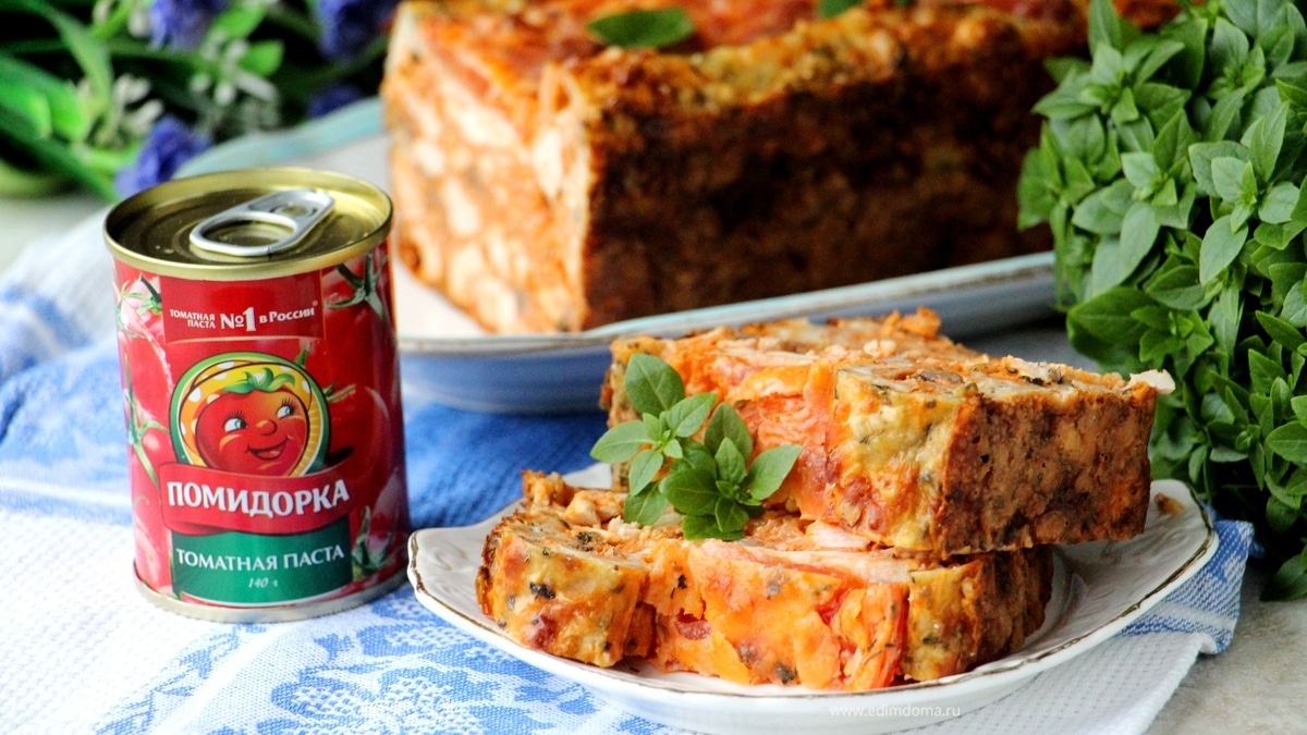 Необыкновенно нежный, сочный пирог, напоминающий лазанью, в итальянском стиле предлагаю приготовить для вашей семьи, в приготовлении этого пирога мне помогла вкусная томатная паста ТМ «Помидорка».