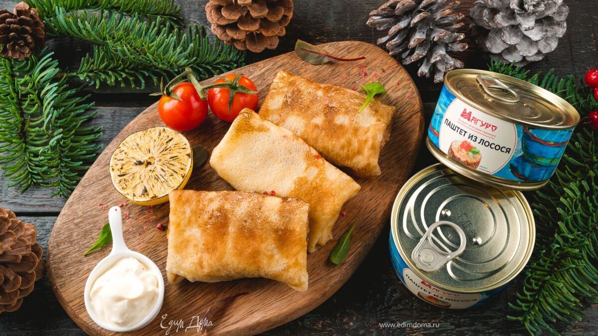 Выложите паштет в центр блина, заверните блинчики. - Шаг 6
