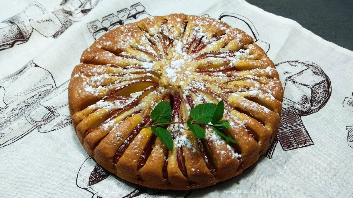Слегка остывший пирог посыпаем сахарной пудрой. Приятного аппетита!