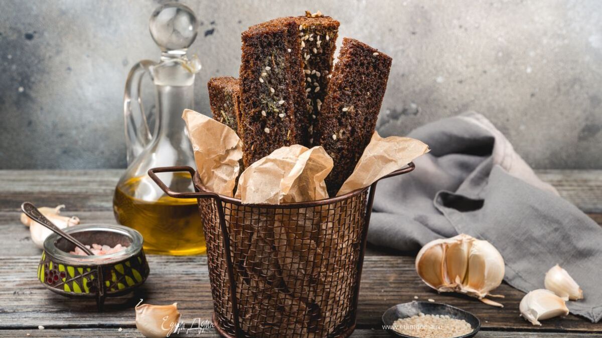 Гренки из бородинского хлеба с чесноком