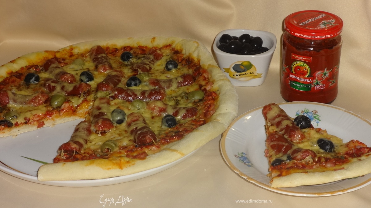 Родиной пиццы считается Неаполь, оттуда она постепенно распространилась по Италии, а со временем получила известность и во всей Европе. В наше время пицца стала не только итальянским, а интернациональным блюдом. Существует множество рецептов теста для пиццы и огромное количество рецептов начинки для пиццы. Предлагаю свой вариант пиццы. Рецепт теста был найден в интернете, немного изменен, а рецепт начинки взят из книги «Пицца и итальянские блюда из макаронных изделий». Для приготовления пиццы я использовала очень вкусную томатную пасту от ТМ «Помидорка». Приготовленного теста мне хватило на 2 пиццы.