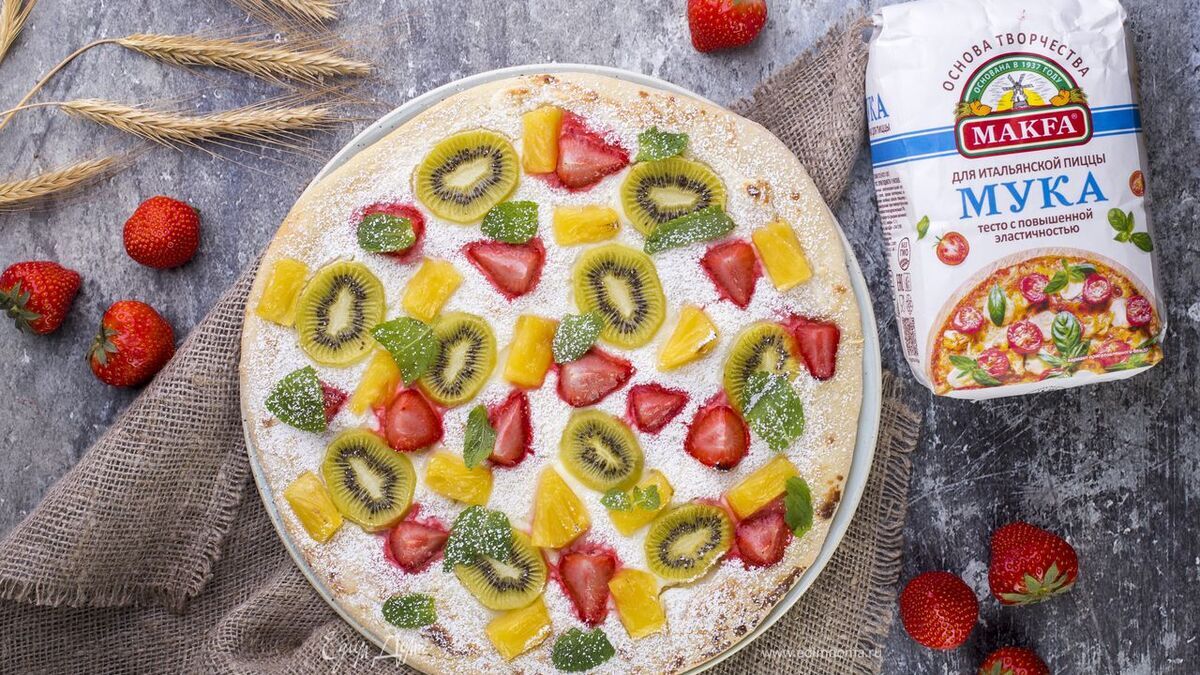 Сладкая пицца с ягодами и фруктами