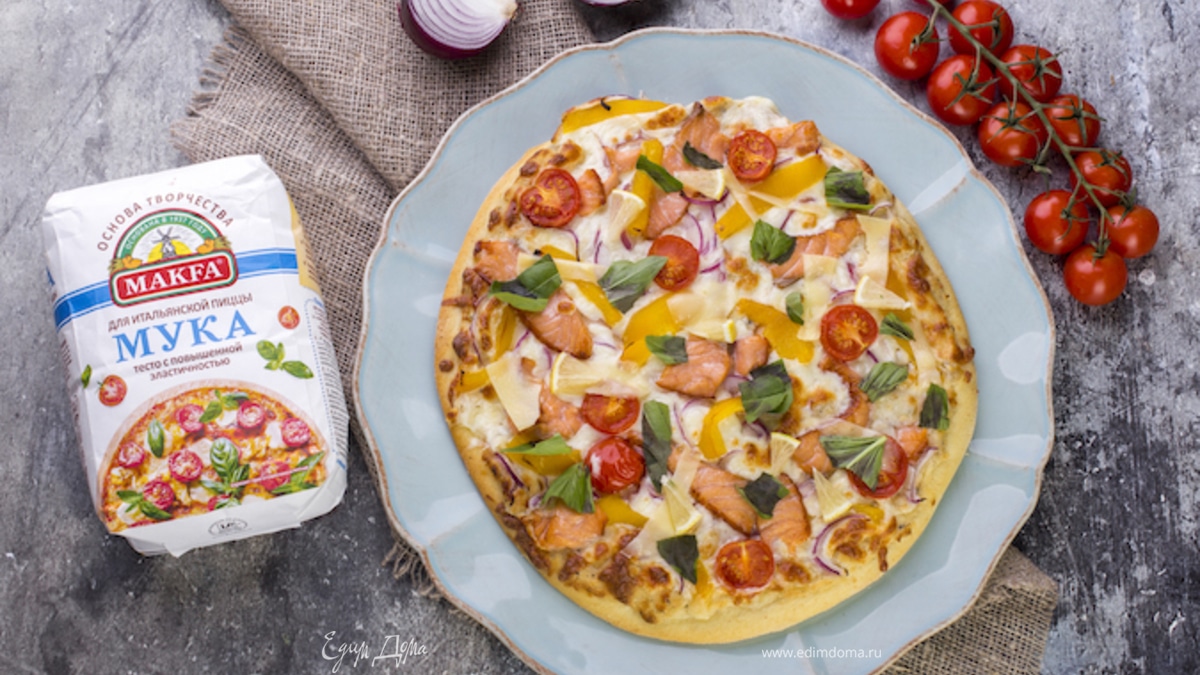 Пицца с болгарским перцем и слабосоленым лососем