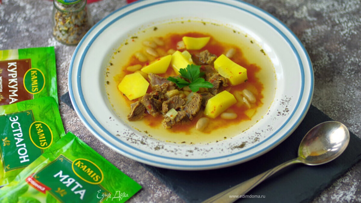 Добавьте в суп соль, травы и специи Kamis. - Шаг 8
