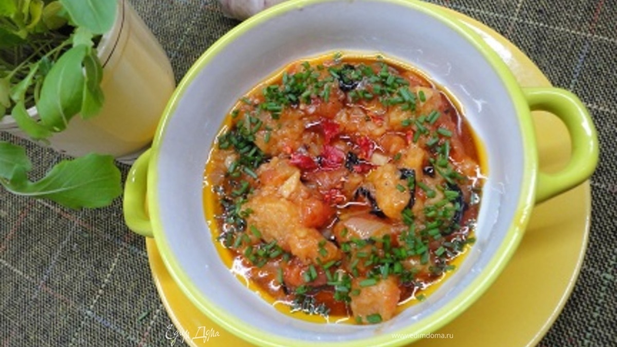 Лук нарезать мелкими кубиками. 3 ст. л. оливкового масла разогреть в кастрюле с толстым дном. Лук потомить при небольшом нагреве, не допуская зажаривания, добавить перец чили хлопьями и продолжать томить, периодически помешивая. В итоге лук закарамелизируется и станет золотым, как для лукового супа. - Шаг 2