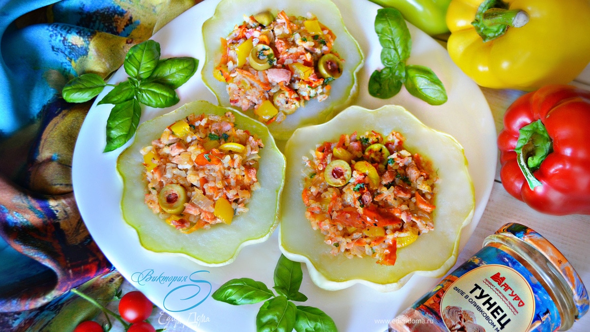 Патиссоны, фаршированные тунцом с овощами