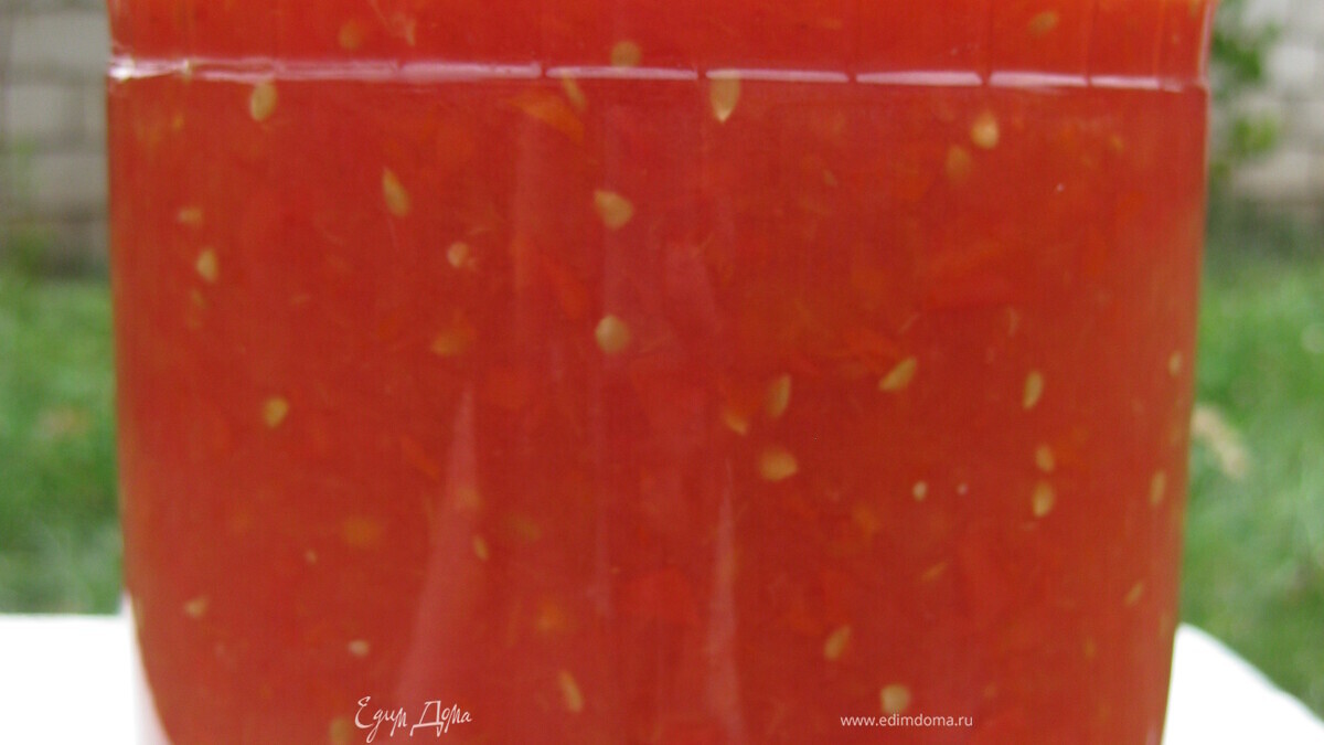 - Шаг 1Помидоры пропустить через мясорубку и варить после закипания минут 10, добавить по вкусу соль и сахар. Разлить в стерелизованные баночки и закатать, перевернуть, укрыть и спустя часов 6 унести в подвал или прохладное место. P.S. Для получения однородной массы сока, после мясорубки поместить в блендер, развести немного водой, а затем варить. Зимой, когда откроете, немного разведите кипячёной водой (который не разбивался блендером), проверте на соль и сахар. Приятного!
