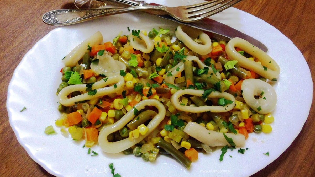 Соте из кальмаров с овощами
