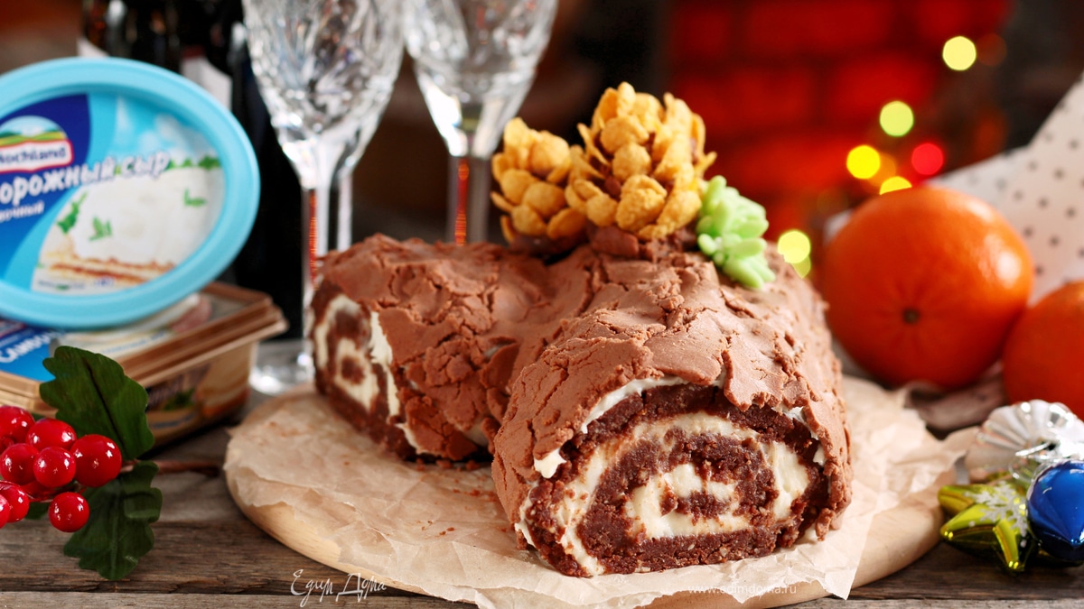 Торт «Рождественское полено», представляющий собой шоколадный рулет, является традиционным французским символом в праздновании Рождества. Обычно готовят его из бисквитной основы, что многих хозяюшек пугает по ряду причин. Но можно приготовить это шоколадное лакомство без выпечки, получив при этом не менее вкусный десерт.