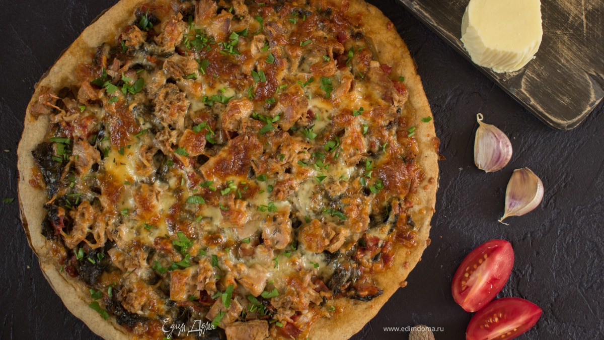 Я, как и многие, очень люблю пиццу. Конечно, пицца — далеко не самое полезное блюдо, но можно поэкспериментировать и сделать версию, которая не навредит здоровью. В моем сегодняшнем варианте тесто приготовлено из смеси пшеничной и ржаной муки, а начинка — из тунца, томатов и шпината. И вкусно, и полезно!