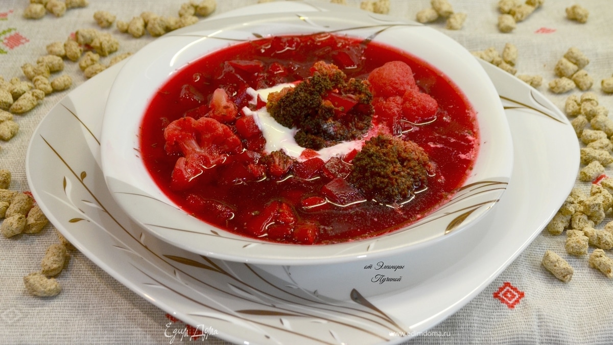 Подать витаминный супчик порционно со сметаной, по желанию добавьте хрустящие ржаные отруби. - Шаг 3
