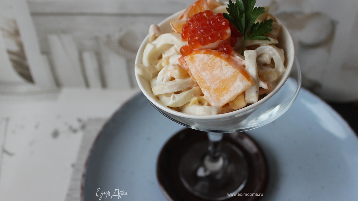 Салат заправляем, перемешиваем. И подаем порционно, сдобрив каждую порцию ложечкой икры. - Шаг 9